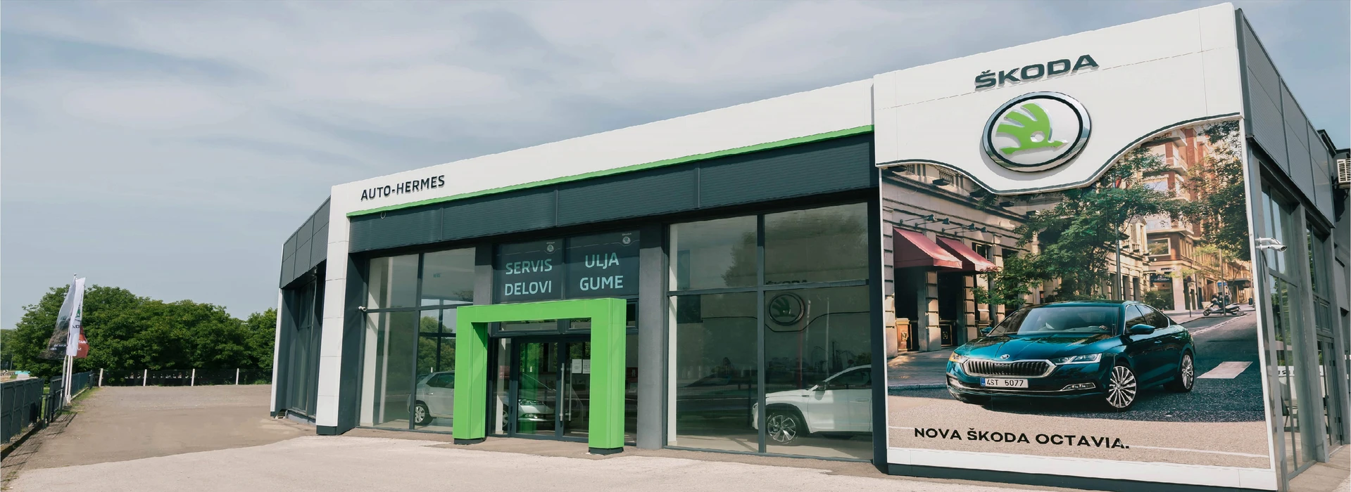 Ovlašćeni prodavac Škoda automobila, pored prodajnog salona, potpuno renoviranog 2016. godine, urađenog po svim zahtevima Škoda kompanije, Auto-Hermes prodaje i originalne rezervne delove i servisira Škoda automobile. Uz usluge prodaje i servisa, kompanija Auto-Hermes pruža i usluge tehničkog pregleda automobila i regulisanje osiguranja i registracije vozila. Sistem zamene staro za novo postoji od samog osnivanja kompanije.