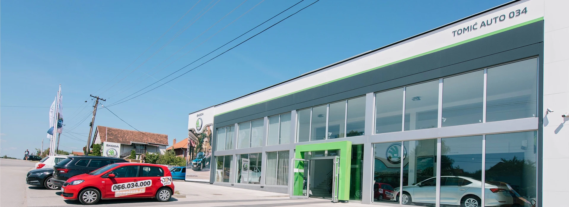 Izgrađen i opremljen u skladu sa poslednjim Škodinim standardima, najnoviji i najmoderniji auto centar za ŠKODU koncipiran je tako da objedini paletu kompletnih usluga koje pruža klijentima, počev od odabira novog automobila, do samog održavanja i servisiranja. U prijatnom ambijentu centra Tomić auto 034 d.o.o., ljubazni prodavci su kupcima uvek na raspolaganju, da im predstave sve izložene modele ŠKODE, opremu automobila, boje i cene, kao i mogućnosti kupovine na kredit, lizing, zamenu „staro za novo“. Kupac samo treba da odabere, a svoje vozilo dobija - odmah!
